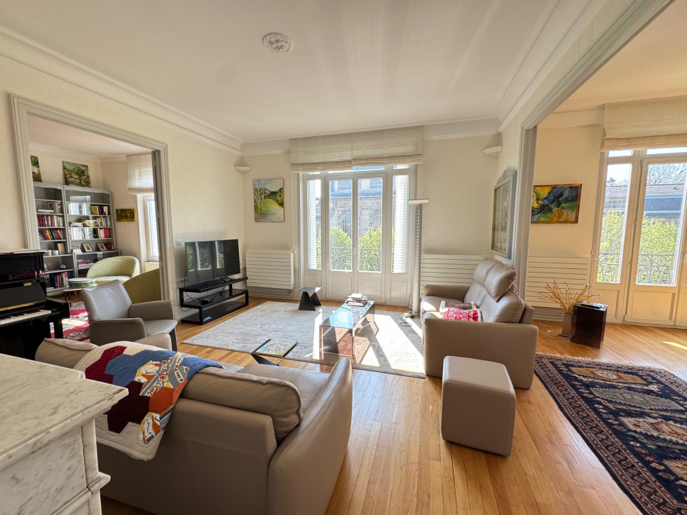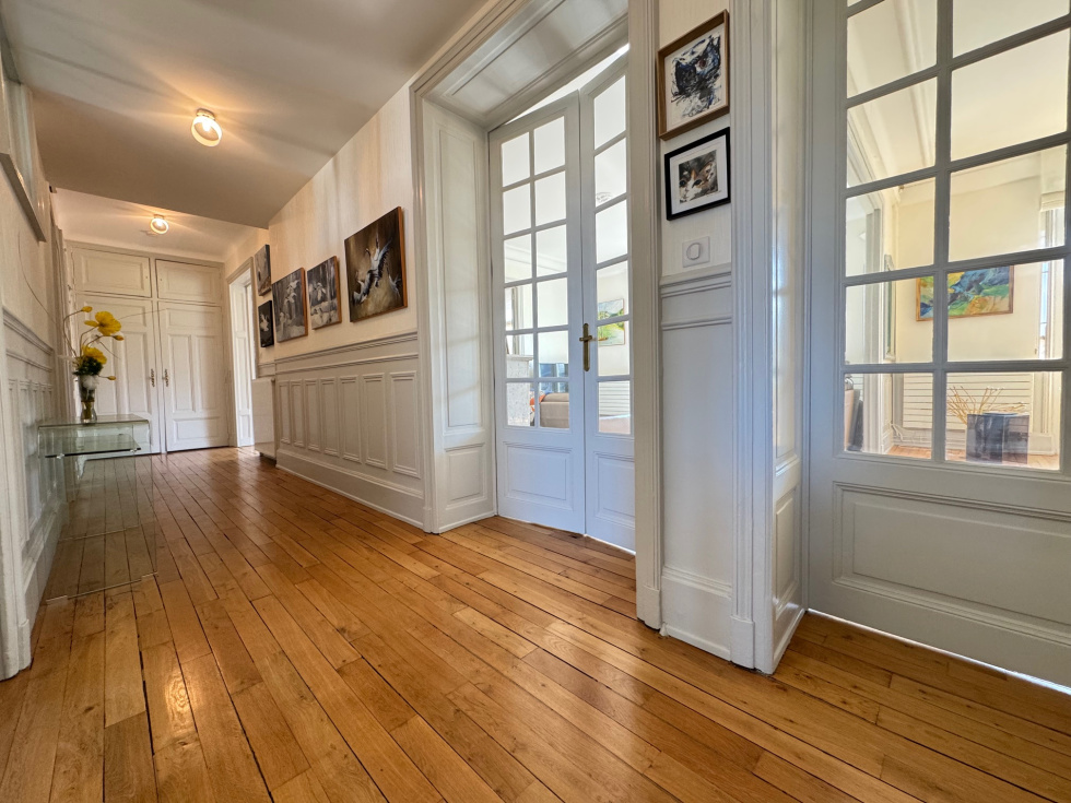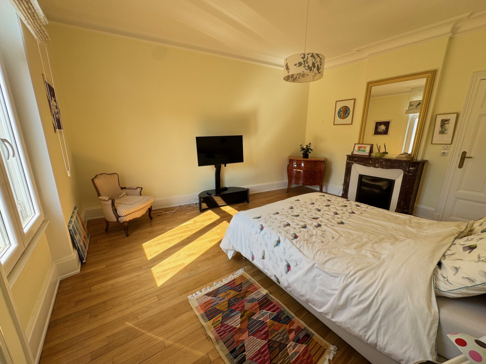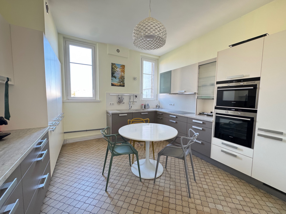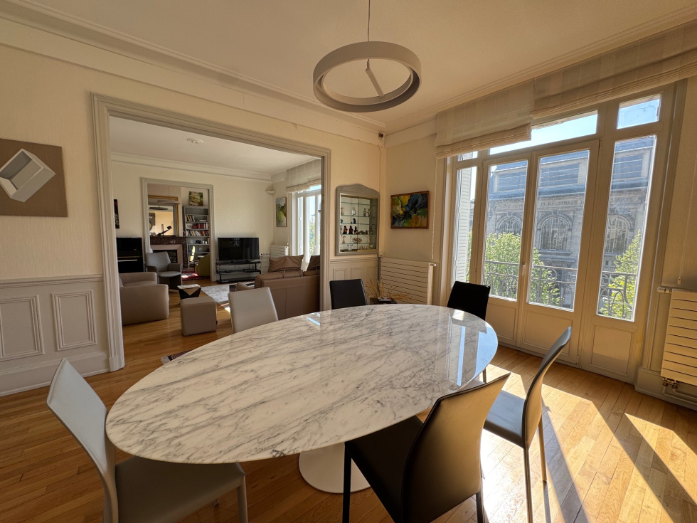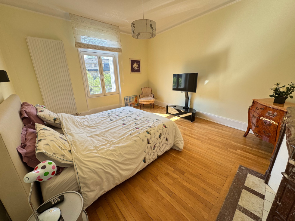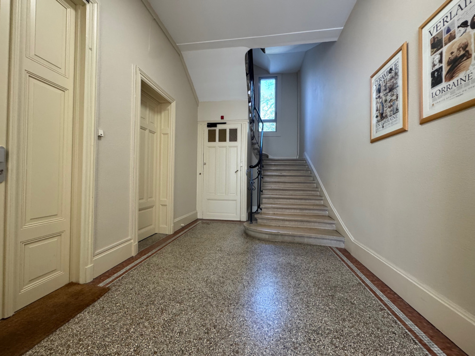 Nancy, avenue Boffrand, à 2 pas du parc Sainte-Marie) très beau F6 de caractère (parquet de chêne, cheminées, moulures, belle hauteur sous plafond, cimaises, etc.) en parfait état. 2ème étage sur 3 avec ascenseur (il faut monter 9 marches même si un ascenseur est présent). Le logement possède un garage (3.21m de large x 4.47m de long) à l'arrière de la copropriété (impasse Victor Lemoine), la jouissance d'un parking extérieur dans la copropriété, 2 grandes caves et 2 grands greniers. Ce magnifique appartement traversant, situé au dessus des arbres de l'avenue Boffrand bénéficie d'une vue sur le parc et l'ancien musée des Beaux-Arts et d'une agréable luminosité. Orientation Sud pou les pièces de réception. Aucun vis à vis. Il se compose : d'une vaste entrée avec placards aménagés, d'un salon de 22.84m² avec cheminée, d'un séjour de 22.78m², d'un bureau ou chambre de 19.40m² avec cheminée (vous pouvez avoir 3 pièces de réception sur l'avenue si vous n'avez besoin que de 3 chambres), d'une belle cuisine dinatoire, moderne, séparée et parfaitement équipée de 15.58m², de 3 confortables chambres (21m², 14.06m², 13.92m²), d'une grande salle de bain de 10m² avec coiffeuse, buanderie, wc et fenêtre, d'une salle de douche avec fenêtre et d'un second wc. Chauffage individuel au gaz, chaudière Frisquet à condensation. Double vitrage récent, idem électricité, peinture, vitrification des parquets, sanitaires, cuisine, chauffage, etc... Il n'y a aucun travaux à faire. Le DPE classe le logement en C. La copropriété est en parfait état. Très beau communs avec escalier en pierre, sols en terrasso, beaux volumes, ascenseur moderne. La réfection de la toiture va être votée et sera à la charge du vendeur. Un seul appartement par étage. Les charges de copropriété sont de 220€ par mois (syndic, ménage, eau froide, ascenseur, assurance etc.) et la taxe foncière de 3433€ par an pour le logement, le garage, le parking, les caves et les greniers. Le prix de vente est de 520 000€ Frais d'agence inclus. Les frais d'agence sont de 25 000€ TTC soit 5.05% TTC, à la charge de l'acquéreur et compris dans le prix de 520 000€. Pour plus d'informations ou visites, merci de contacter Olivier DUVAL au 06.80.24.41.48